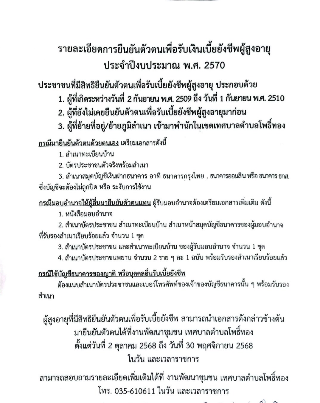 รายละเอียดการยืนยันตัวตนเพื่อรับเงินเบี้ยยังชีพผู้สูงอายุ |